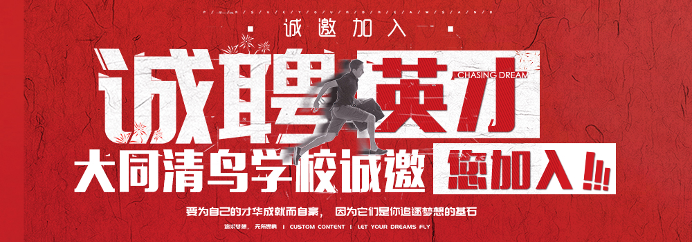 您當(dāng)前的位置:大同人才網(wǎng) >> 大同人才網(wǎng)招聘信息 >> 大同市清鳥(niǎo)精英教育培訓(xùn)學(xué)校2025最新招聘信息